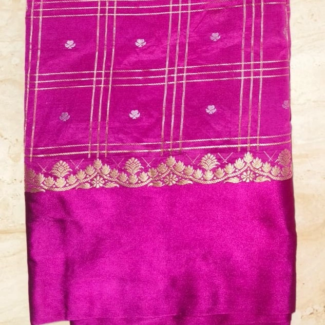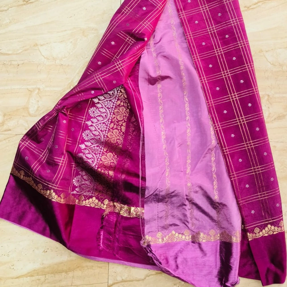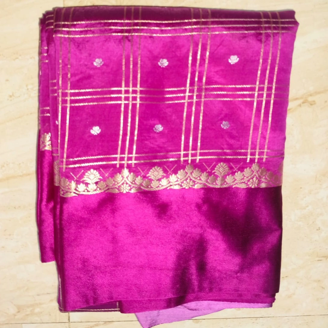Pure Banaras pattu saree allover zari checks and pure satin boarder along zari design